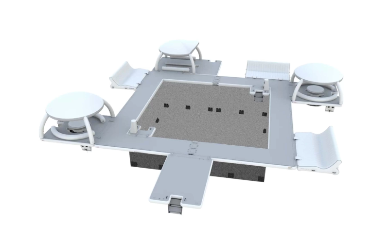 Фурнитура: Включает канаты, кольца для крепления лодок, лестницы для спуска в воду и аксессуары для ухода за платформой.