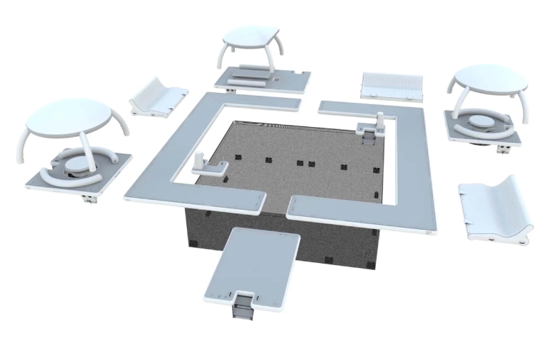 Модули со столиками и шатрами: Каждый модуль оснащён столиком, шатром и удобными сиденьями для комфортного обеда или ужина на свежем воздухе.