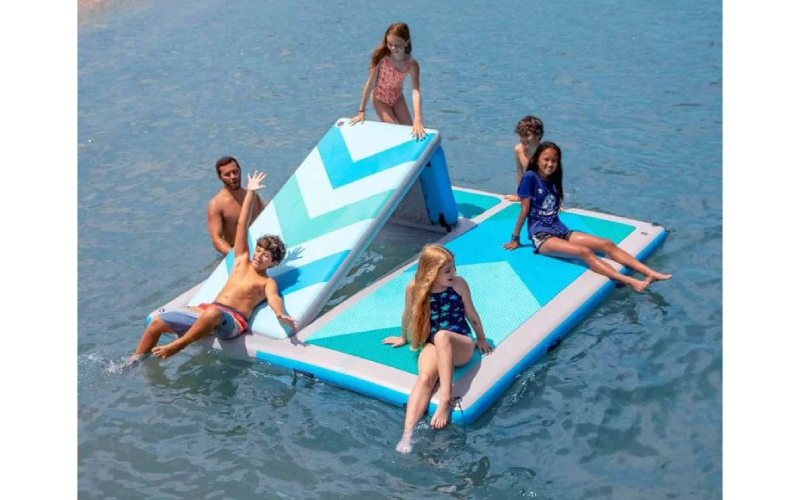 Надувная горка и плоская док-станция 2 в 1: идеальное решение для веселого отдыха на воде!