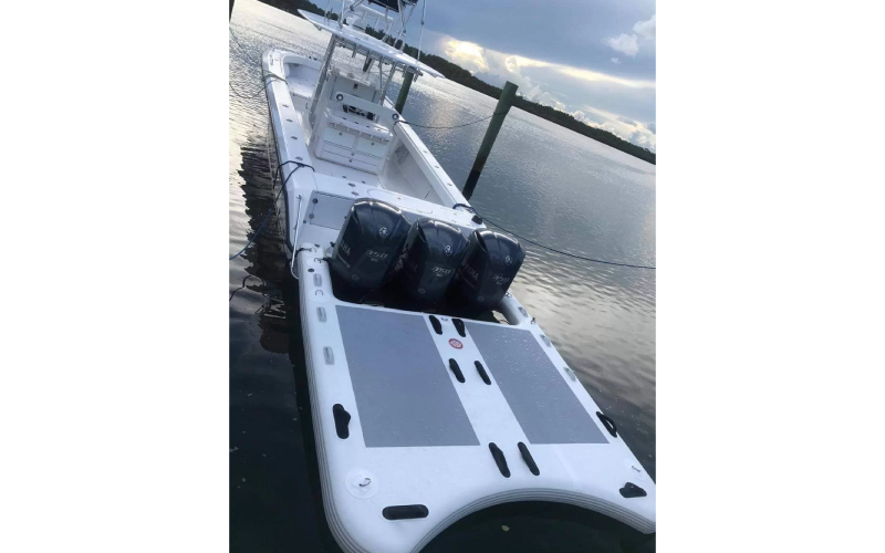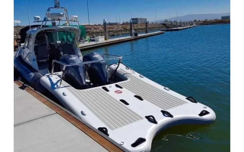 Надувная палуба для катера - идеальное решение для всех, кто ценит комфорт и удобство во время отдыха на воде. Она обеспечивает отличное место для расслабления на уровне воды или проведения технических работ. Специально разработанный вырез под навесные моторы позволяет без проблем управлять катером, сохраняя стабильность и минимальное воздействие на кильватер.