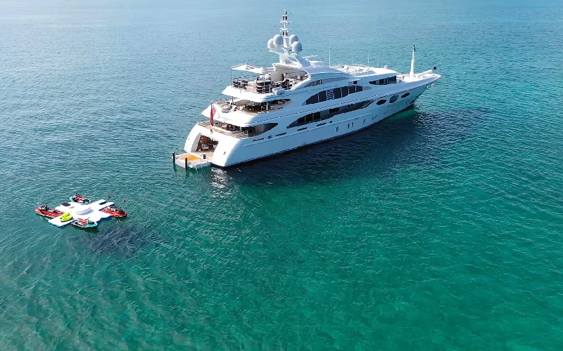 Дополнительные характеристики: • Многоцелевое использование: Подходит для стыковки с гидроциклами, парусными лодками, SeaBobs и SUP. • Вместимость: Размещает несколько средств передвижения и гостей одновременно. • Адаптивность: Может быть полностью адаптирована к вашему водному транспорту и стилю яхты.