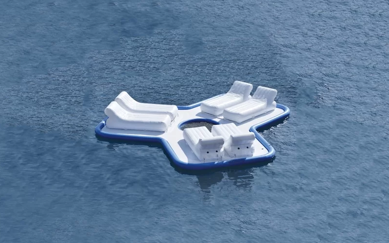 Надувной плот для отдыха представляет собой многофункциональную платформу для приятного времяпрепровождения на воде. Он легко привязывается к вашей яхте или устанавливается на пляже, доке или пристани, предоставляя уникальную возможность наслаждаться солнечными ваннами, закатными коктейлями и отдыхом в окружении водной среды. Этот надувной остров идеально подходит для дайвинга и отдыха после активного водного отдыха.