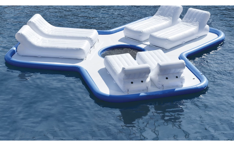 Надувной плот для отдыха — идеальное решение для тех, кто ищет комфорт и развлечения на воде. С возможностью быстрого монтажа и удобной транспортировки, он предоставляет уникальную платформу для отдыха и активного времяпрепровождения. Современный дизайн с шестью шезлонгами, бассейном для прохлады и лёгким креплением делают его идеальным выбором для всех любителей водных приключений и отдыха на природе.