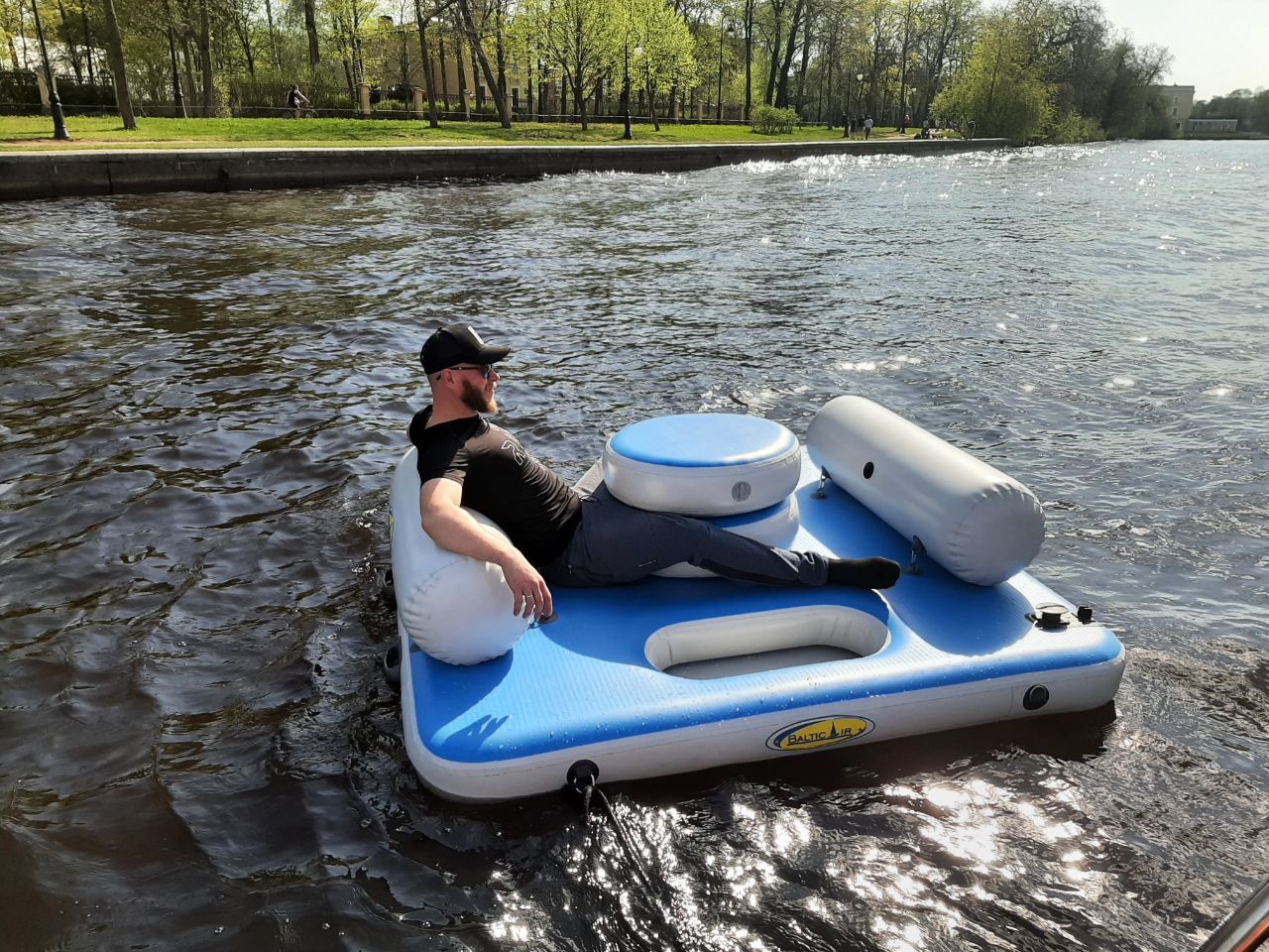 Просторная платформа размером 2x2 метра с толщиной 20 см — идеальное решение для отдыха компанией до 3 взрослых. Устойчивая конструкция, нескользящая поверхность и встроенный кулер делают этот плот незаменимым для пикников, рыбалки или солнечных ванн. Глубина эксплуатации — от 70 см.