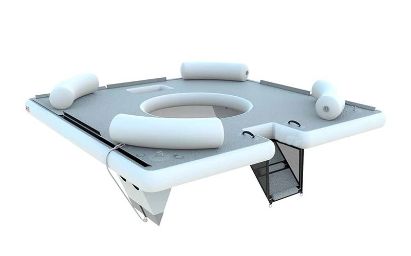 - Безопасность и удобство: Не скользящая верхняя поверхность и легкий доступ через ступеньки делают использование плота удобным для людей любого возраста.