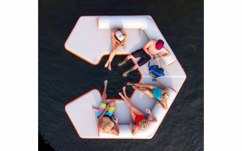Надувной плот Rhombus представляет собой превосходное решение для тех, кто ищет комфорт и удобство во время отдыха на спокойной воде. Его уникальная форма ромба обеспечивает простор и комфорт для компании из 5-7 человек благодаря мягким спинкам и удобному вырезу в центре.