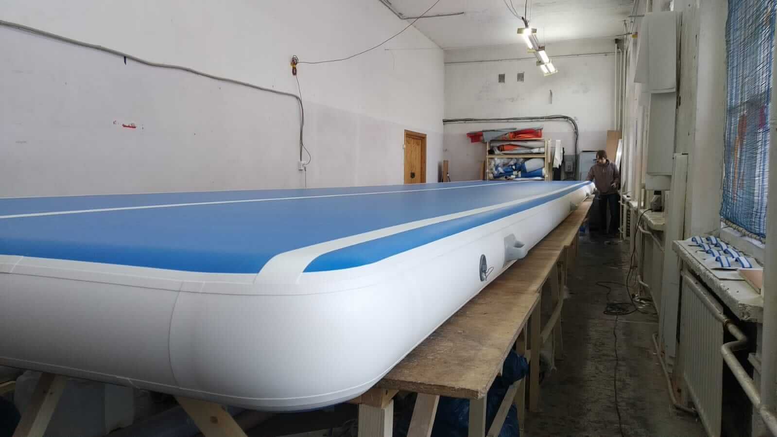 Дорожка длиной 10 метров изготовлена из 6-слойного армированного ПВХ и двойными швами, что обеспечивает устойчивость к деформации даже при активных нагрузках. Антискользящее покрытие и толщина 20 см гарантируют безопасное приземление, а экологичный материал подходит для детей с 3 лет. Вес конструкции — 66 кг, что делает её удобной для транспортировки и хранения в домашних условиях.